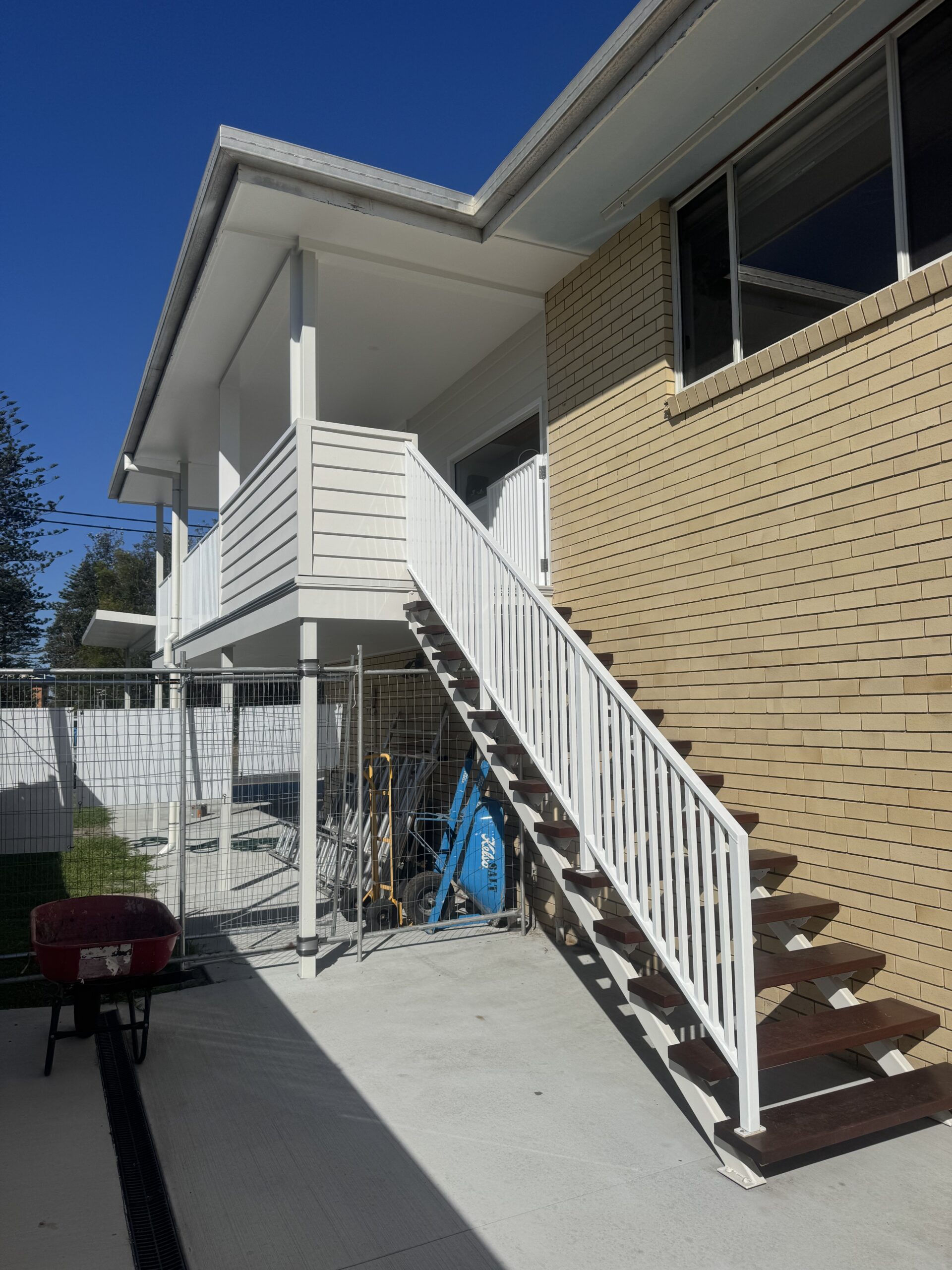 The finished project delivers a dramatic uplift to the property's exterior presentation and outdoor liveability. Every element — from the engineered balcony to the fresh concrete — has been executed to a consistent, modern standard: